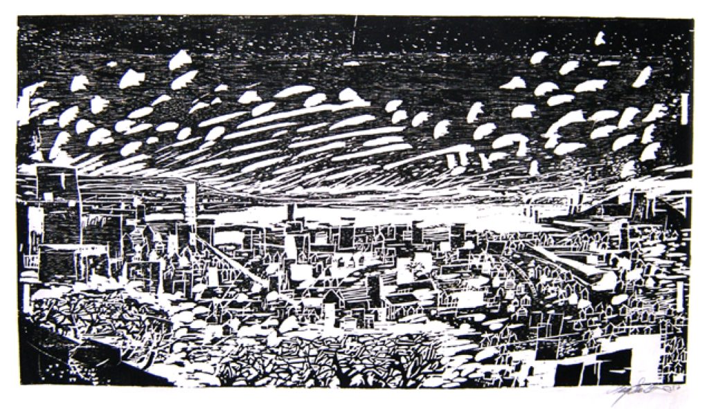 Woodcuts From Sam Lawrence Park Dedication to Abandoned Wood Conflict Moonlight & Industry Wisdom of the Tree The City